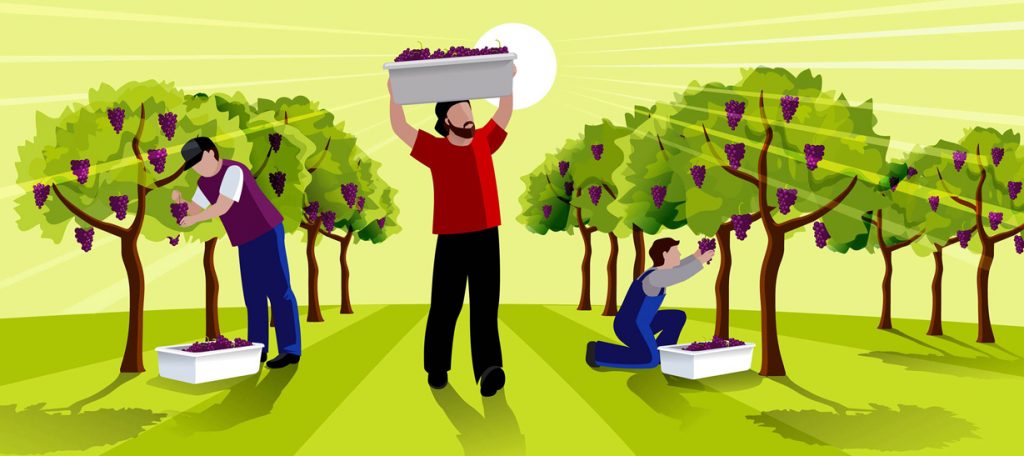 Alcuni uomini sono già lì, accettano lo stipendio di un denaro e iniziano subito a lavorare; sanno che la loro giornata di lavoro è iniziata all’alba e finirà al tramonto, ma sanno anche che il loro padrone li pagherà onestamente e, chissà, se saranno bravi gli verrà data pure una mancia.